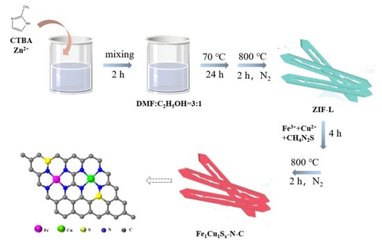 3.2.2. Preparation of Fe1Cu1S8-N-C