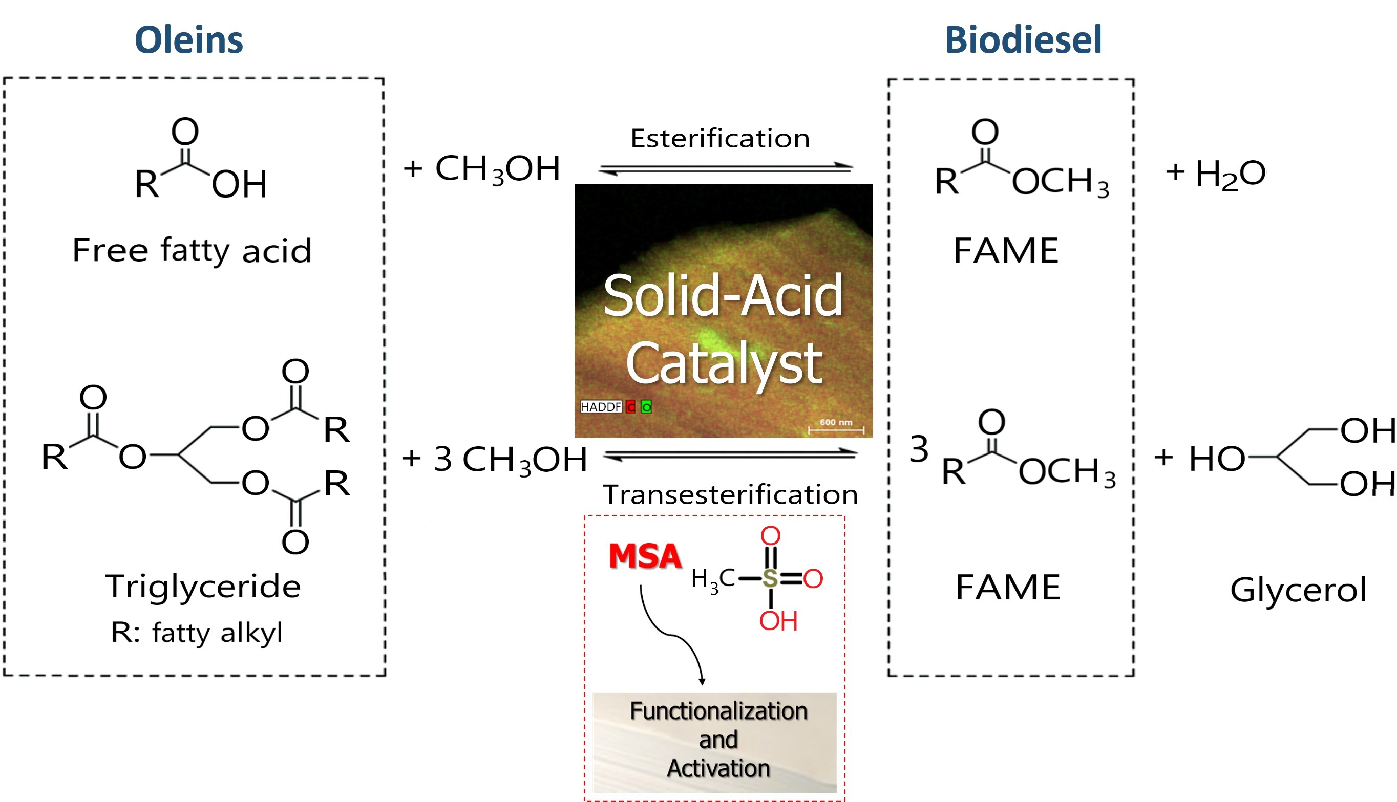 Heterogeneization of Biodiesel Production by Simultaneous Esterification and Transesterification of Oleins