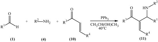 - Bertenshaw, S.; Kahn, M. Phosphine Mediated Synthesis of 2-Methylidene-3-Amino Esters and Ketones. Tetrahedron Lett. 1989, 30, 2731–2732. [Google Scholar] [CrossRef]