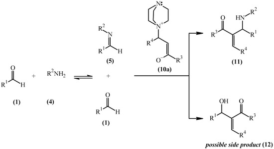 - Ciganek, E. The Catalyzed α-Hydroxyalkylation and α-Aminoalkylation of Activated Olefins (The Morita-Baylis-Hillman Reaction). Org. React. 2004, 51, 201–350. [Google Scholar] [CrossRef]