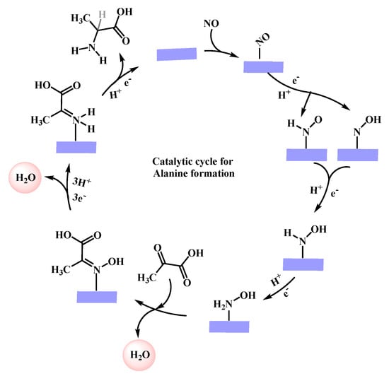 - Xian, J.; Li, S.; Su, H.; Liao, P.; Wang, S.; Zhang, Y.; Yang, W.; Yang, J.; Sun, Y.; Jia, Y.; et al. Electrocatalytic synthesis of essential amino acids from nitric oxide using atomically dispersed Fe on N-doped carbon. Angew. Chem. Int. Ed. 2023, 62, e202304007. [Google Scholar] [CrossRef]