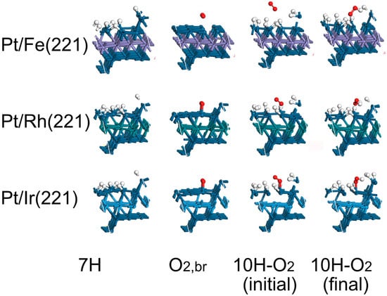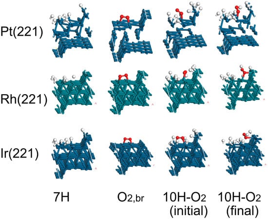 | M-nH | Pt(221) | Rh(221) | Ir(221) | Pt/Fe(221) | Pt/Rh(221) | Pt/Ir(221) | 10H–O2, Final |