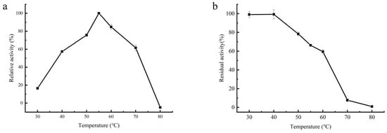 2.4. Effect of Temperature on Activity and Stability of Purified β-Amylase