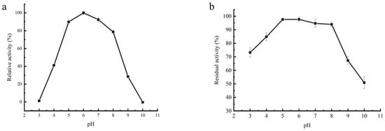 2.5. Effect of pH on Activity and Stability of Purified β-Amylase