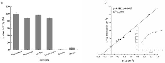 - Xie, F.; Quan, S.; Liu, D.; Ma, H.; Li, F.; Zhou, F.; Chen, G. Purification and Characterization of a Novel α-Amylase from a Newly Isolated Bacillus methylotrophicus Strain P11-2. Process Biochem. 2014, 49, 47–53. [Google Scholar] [CrossRef]