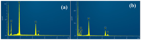 EDX spectral analysis of (a) SrTiO3 and (b) MXene/SrTiO3.