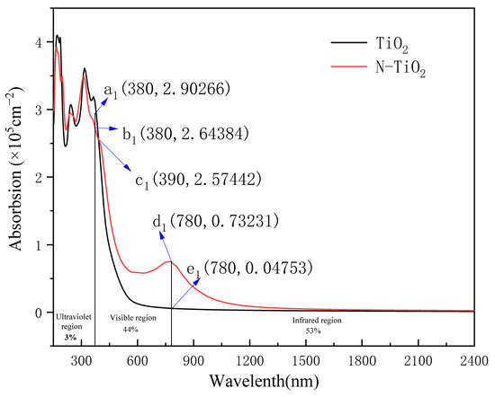Absorption spectrum curves of TiO2 and N-TiO2.
