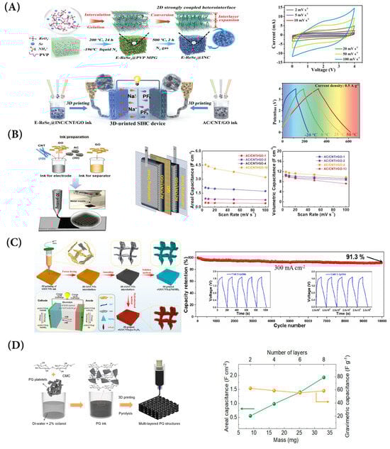 - Yan, J.; Huang, S.; Von Lim, Y.; Xu, T.; Kong, D.; Li, X.; Yang, H.Y.; Wang, Y. Direct-ink writing 3D printed energy storage devices: From material selectivity, design and optimization strategies to diverse applications. Mater. Today 2022, 54, 110–152. [Google Scholar] [CrossRef]