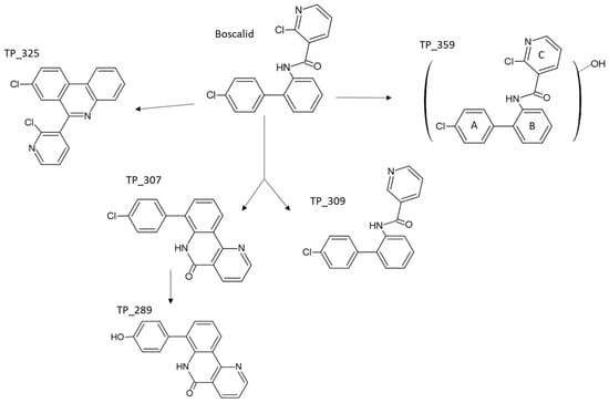 Finally, the predictions of Toxtree, which are summarized in Table S3, do not show significant variations between boscalid and its TPs, apart from the fact that TP_325 was the only compound that could potentially induce genotoxicity related carcinogenesis.
