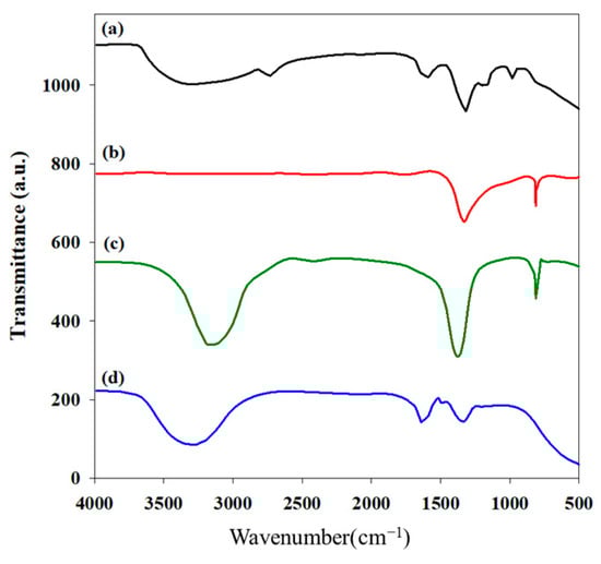 FT-IR spectra of various samples. (a) Synthesized HAN; (b) hydroxylamine; (c) ammonium nitrate; (d) hydroxylamine sulfate.