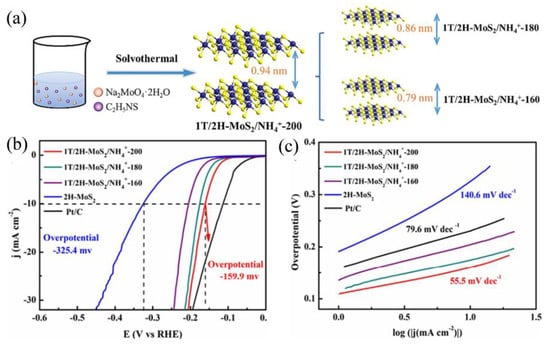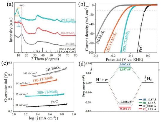 - Tang, J.; Huang, J.; Ding, D.; Zhang, S.; Deng, X. Research progress of 1T-MoS2 in electrocatalytic hydrogen evolution. Int. J. Hydrog. Energy 2022, 47, 39771–39795. [Google Scholar] [CrossRef]