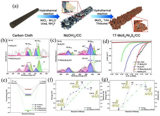 - Hu, H.; Xu, J.; Zheng, Y.; Zhu, Y.; Rong, J.; Zhang, T.; Yang, D.; Qiu, F. NiS2-Coated Carbon Fiber Paper Decorated with MoS2 Nanosheets for Hydrogen Evolution. ACS Appl. Nano Mater. 2022, 5, 10933–10940. [Google Scholar] [CrossRef]