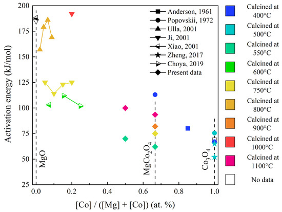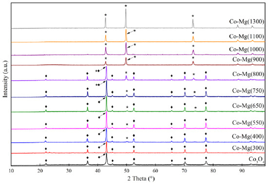 | Co–Mg(1100 + 750) | 2.8625, 2.4466, 2.0284, 1.5614, 1.4363 2.4466, 2.1291, 1.5079 | 8.086 4.246 | MgCo2O4/Co3O4, (Co, Mg)O |