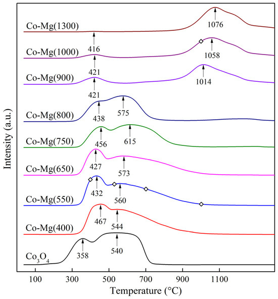 - Veselov, G.B.; Stoyanovskii, V.O.; Cherepanova, S.V.; Vedyagin, A.A. Sol–gel prepared Co–Mg–O oxide systems: Redox behavior, thermal stability and catalytic performance in CO oxidation. React. Kinet. Mech. Catal. 2023, 136, 233–250. [Google Scholar] [CrossRef]