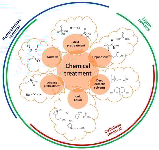 The main chemical pre-treatment methods are summarized in Figure 3.
