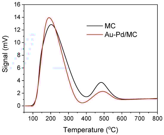NH3-TPD profiles of MC and Au-Pd/MC.