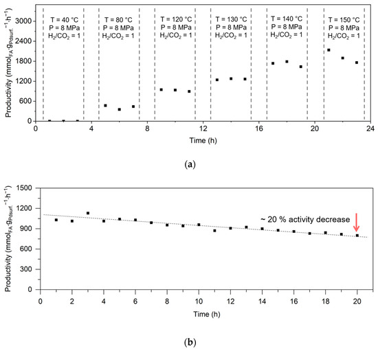 3.3. Continuous Hydrogenation of CO2 to Formate over Trickle-Bed Reactor