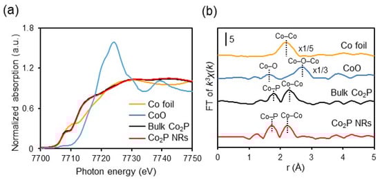 Co K-edge XANES spectra of Co foil, CoO, bulk Co2P, and Co2P NR.