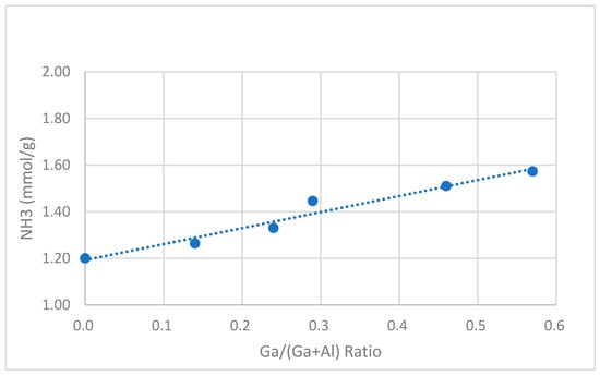 Total acidity (NH3-TPD) of catalyst samples against [Ga/(Ga+Al)] ratio.