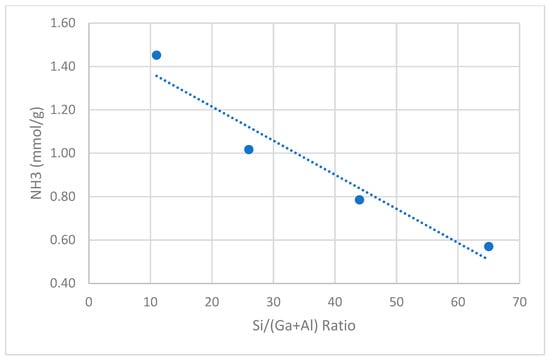 Total acidity (NH3-TPD) of catalyst samples against [Si/(Ga+Al)] ratio.