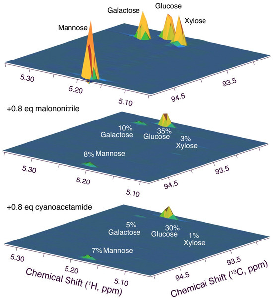 - Drew, K.N.; Zajicek, J.; Bondo, G.; Bose, B.; Serianni, A.S. 13C-Labeled Aldopentoses: Detection and Quantitation of Cyclic and Acyclic Forms by Heteronuclear 1D and 2D NMR Spectroscopy. Carbohydr. Res. 1998, 307, 199–209. [Google Scholar] [CrossRef]