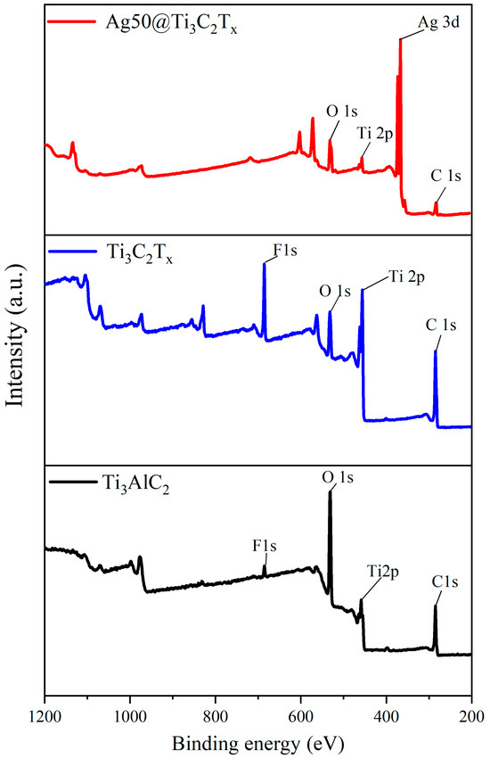 - Na, L.-Å.; Persson, P.O.; Rosen, J. X-ray Photoelectron Spectroscopy of Ti3AlC2, Ti3C2Tz, and TiC Provides Evidence for the Electrostatic Interaction between Laminated Layers in MAX-Phase Materials. J. Phys. Chem. C 2020, 124, 27732–27742. [Google Scholar]