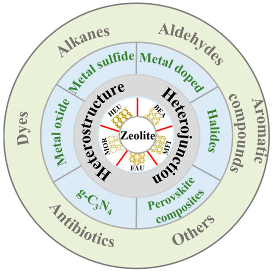 - Hu, G.; Yang, J.; Duan, X.; Farnood, R.; Yang, C.; Yang, J.; Liu, W.; Liu, Q. Recent developments and challenges in zeolite-based composite photocatalysts for environmental applications. Chem. Eng. J. 2021, 417, 129209. [Google Scholar] [CrossRef]