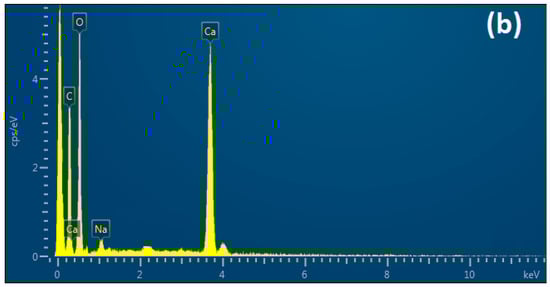 Scanning electron microscopy and energy dispersive X-ray spectroscopy of (a) CaO and the (b) CaO/CNC composite.