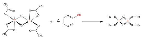 - Tang, R.; Wang, S.; Zhang, Y.; Chen, T.; Wang, G. Catalytic property of titanyl acetate in the transesterification reaction of dimethyl carbonate and phenol. Chem. J. Chin. Univ. 2014, 35, 2418–2424. [Google Scholar]