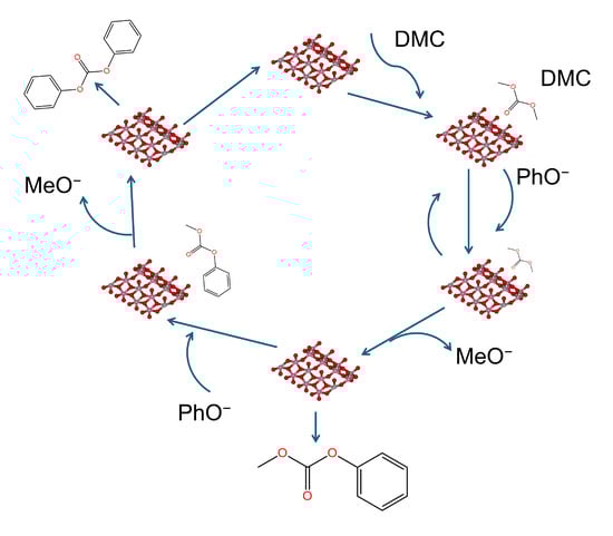 - Song, Z.; Jin, W.; Gao, F.; Jin, X. Recent advances in catalyst development for transesterification of dialkyl carbonates with phenol. Ind. Eng. Chem. Res. 2020, 59, 20630–20645. [Google Scholar] [CrossRef]