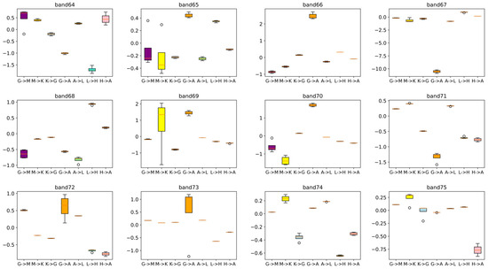 Boxplot of the calculated reduced effective mass of selected bands along different k-point paths. High symmetry k-points were chosen to be the segmentation points of the fitted curve to avoid the cusps introduced by the discontinuity of the paths.