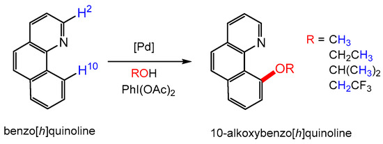 Oxidative C-H functionalization of benzo[h]quinoline in the presence of different alcohols, a sacrificial oxidant and a palladium complex.