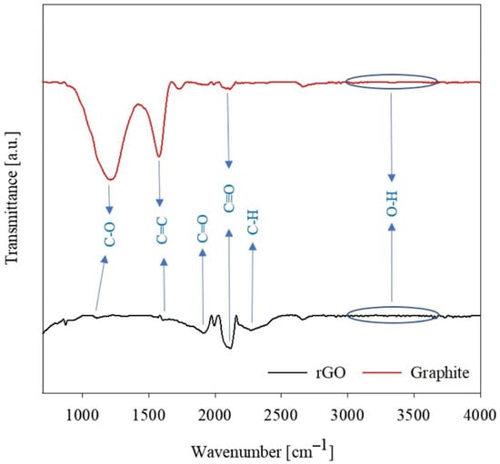 FTIR analysis related to graphite and rGO [65]. Copyright 2023, Springer.