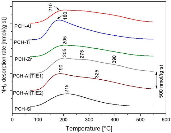 NH3-TPD profiles obtained for the PCH samples. Reprinted from [95], copyright (2018), with permission from Elsevier.