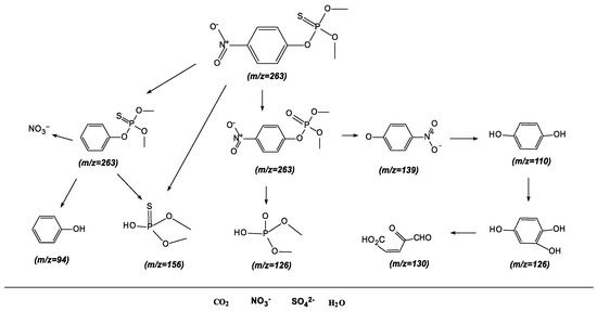 Methyl parathion (MP), one of the most widely used organophosphorus pesticides in agriculture, could effectively control a variety of pests. MP was highly toxic and harmful to the nervous systems of humans and animals. In addition, MP was easily soluble in water; once the excess MP was dissolved in the underground water, it would cause serious environmental pollution. For the degradation of MP, the traditional methods mainly included chemical oxidation and biological degradation. However, there were several drawbacks associated with these approaches. For example, the chemical oxidation method was complex and required a large number of chemical reagents, and it also produced a large amount of waste liquid, which might lead to secondary pollution. Although the biodegradation method could effectively degrade organic matter, it required specific microbial populations, and the degradation rate was relatively slow [5,6,7,8]. Therefore, it was necessary to find a more effective degradation method for reducing the impact of its residues on the environment and humans.