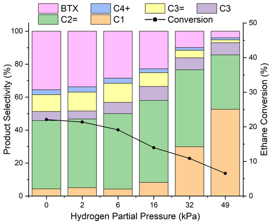 2 partial pressures decreased ethane conversion and significantly increased the methane selectivity. With increasing H