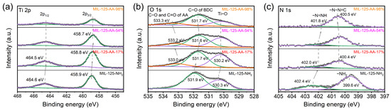 XPS spectra of MIL-125-AA-x%. (a) Ti 2p spectrum; (b) O 1s; (c) N 1s.