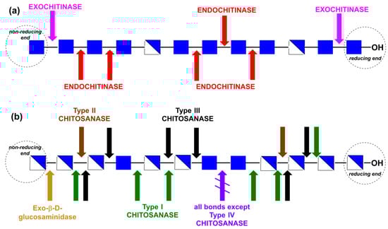 (a) Schematic representation of specificity of chitinases (a) and chitosanases (b).