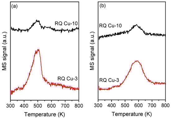 (a) H2-TPD and (b) CO2-TPD profiles of the RQ Cu catalysts.