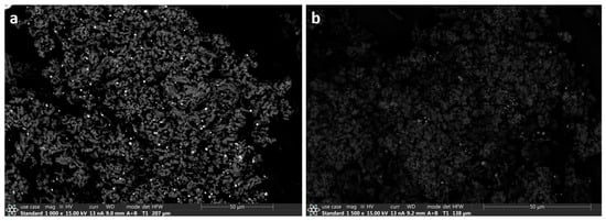 After the second stage of TCD, the deposited carbon covers the metal-catalyzed carbon structures and their catalyst particles, significantly reducing their backscatter signal. As a result, these particles blend into the surrounding carbon and become nearly indistinguishable. The lack of high-intensity backscatter in the SEM images after this stage serves as evidence of the carbon-deposited layer, explaining the near absence of such particles in Figure 7b. For an acceleration voltage of 15 kV, the nominal electron penetration depth into carbon is ~300 nm. The absence of high backscatter intensity suggests that this is the minimum second-stage TCD carbon thickness.