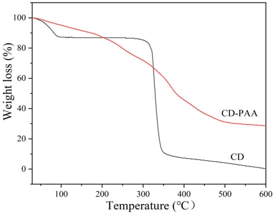 Thermogravimetric analysis curves of CD and CD-PAA.