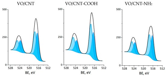 XP spectra of V 2p for VO/CNT catalysts (light blue VV and blue VIV).