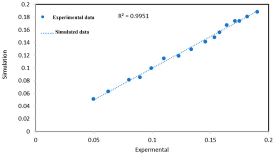 The oxidation process was simulated after the optimal kinetic parameters had been estimated. Table 9, Table 10, Table 11 and Table 12 below show the predicted results compared to the experimental findings under a variety of operational scenarios.