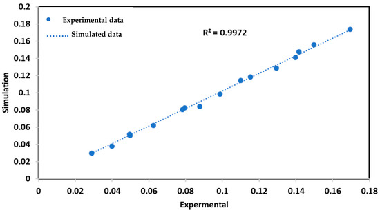 Kinetic parameter values are obtained when the model equations produce the closest correspondence to the experimental data [26,27,28]. In this study, the mathematical model was leveraged to estimate the kinetic parameters of the ODS process under various operational conditions and sulfur concentrations, where the maximum correlation with the measured data was achieved. Two methodologies were considered: linear growth and non-linear growth. The model takes into account the constant parameters detailed in Table 3 below.