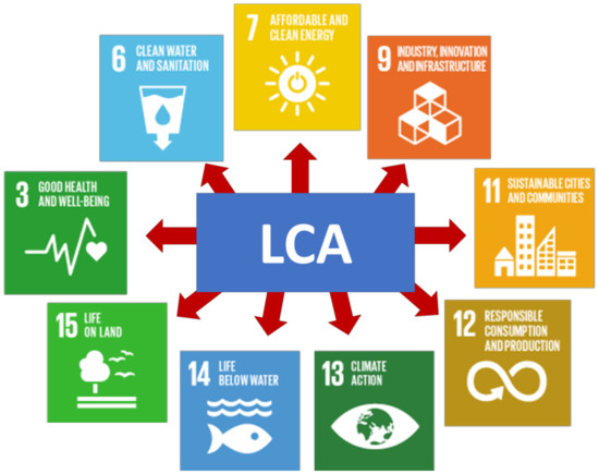 In this sense, LCA is a very adaptable method, with multiple applications in the industry depending on the process. Also, as observed in Figure 3, there are some representative connections between LCA and the so-called Sustainable Development Goals [11], which can be explained as follows: