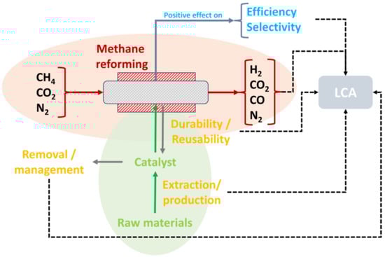 - The role of catalysts in LCA, considering their catalytic performance and influence on biogas reforming and taking into account their environmental impact during extraction, production, use, and management once their useful life is over;