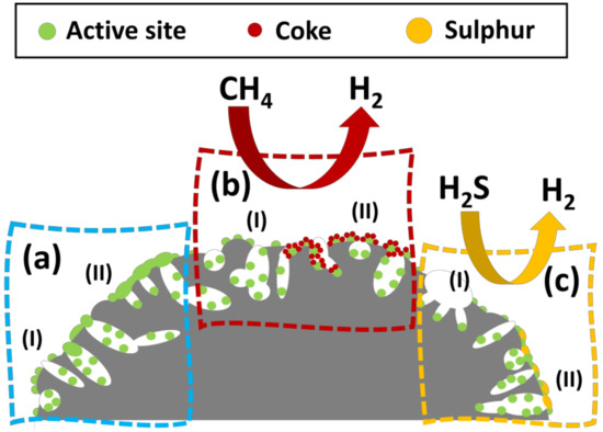 - Izquierdo, U.; García-García, I.; Gutierrez, Á.M.; Arraibi, J.R.; Barrio, V.L.; Cambra, J.F.; Arias, P.L. Catalyst Deactivation and Regeneration Processes in Biogas Tri-Reforming Process. The Effect of Hydrogen Sulfide Addition. Catalysts 2018, 8, 12. [Google Scholar] [CrossRef]