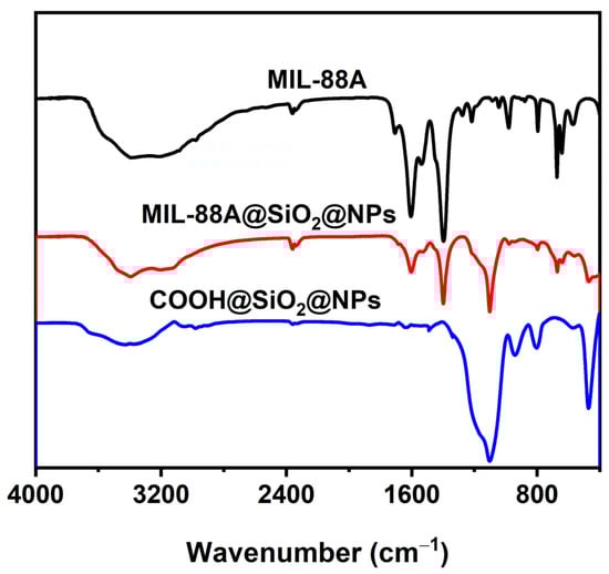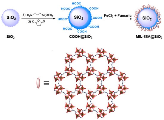 3.3. Preparation of the Core–Shell MIL-88A@ SiO2
