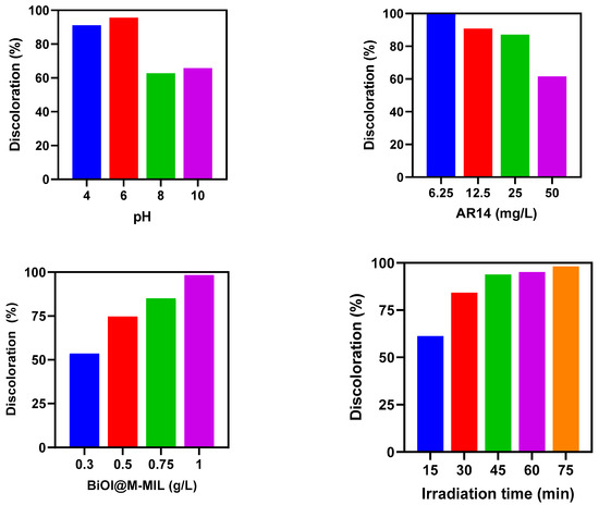 The effect of operating variables on AR14 removal by BiOI@M-MIL.