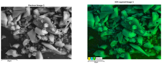 The SEM images show the same shape patterns as the EDS images, which means that the elements are distributed evenly in the particles.